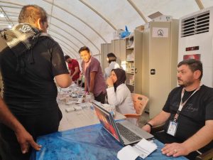 تواصل معاونية الطبابة وشؤون المقاتلين والمضحين بالحشد الشعبي إسناد الطواقم الطبية عبر مستشفى الشهيد علي عبيد البركي الذي يقدم خدماته الطبية والعلاجية لزوار اربعينية الإمام الحسين عليه السلام في طريق نجف-كربلاء.