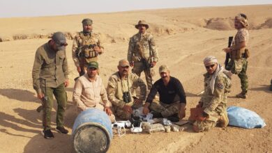 الحشد الشعبي يضبط مضافات لـ”داعش” الإرهابي تحتوي على عبوات وأحزمة ناسفة حديثة الصنع في الأنبار