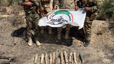 قوة من الحشد الشعبي ترفع عبوات ناسفة من مخلفات “داعش” في نينوى
