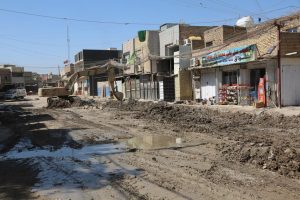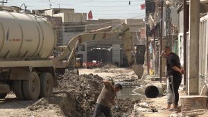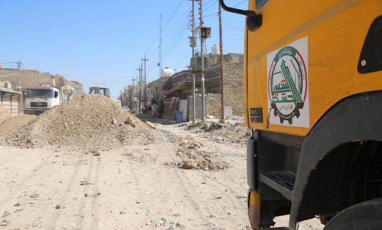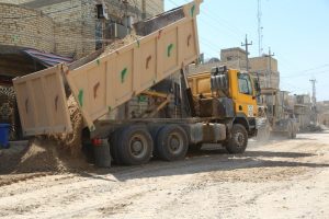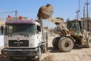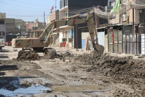يواصل فريق الجهد الخدمي والهندسي الحكومي الأعمال الخدمية لتوفير البنية التحتية الاساسية في حي الكوثر ضمن قاطع بلدية الشعب في بغداد تمهيدا لأكسائها بمادة الأسفلت.