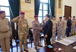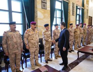 استقبل رئيس مجلس الوزراء القائد العام للقوات المسلحة السيد محمد شياع السوداني، صباح اليوم الاثنين، عدداً من القادة وآمري صنوف قواتنا المسلحة البطلة الذين اشتركوا في تحقيق الانتصار على عصابات داعش الإرهابية، وتحرير محافظة نينوى التي رزحت تحت هيمنة التنظيم الظلامي وبحضور رئيس هيئة الحشد الشعبي ورئيس أركانها.