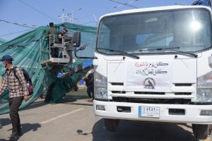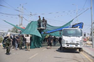 قام قسم الخدمات والصيانة في معاونية الميرة في هيئة الحشد الشعبي بانشاء مظلات شمسية داخل منفذ زرباطية الحدودي بمحافظة واسط.