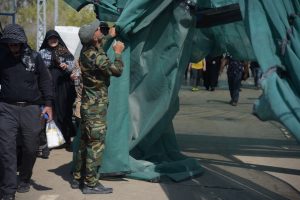 قسم الخدمات في معاونية الميزة ينشئ مظلات شمسية داخل منفذ زرباطية مع ارتفاع درجات الحرارة