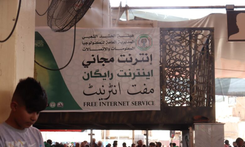 و قدمت المديرية العامة لتكنولوجيا المعلومات والاتصالات في الحشد الشعبي خدمات الاتصال المجاني و خدمة الانترنت واي فاي لزوار امير المؤمنين في ذكرى استشهاد الرسول الاعظم محمد (ص) حيث بلغت الاحصائية ( ٦٧٦٦٠٥٤) استخداماً تراكمياً لخدمة الاتصال والانترنت المجاني في محافظة النجف الأشرف في ذكرى شهادة النبي الأكرم صلى الله عليه وآله وسلم من السادس والعشرين وحتى مساء اليوم الثامن والعشرين من شهر صفر المظفر.