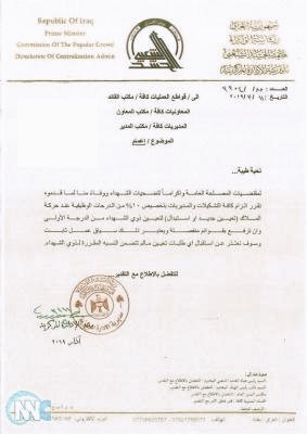 الرئيسية/الادارة المركزية/بالوثيقة .. هيئة الحشد الشعبي تلزم كافة تشكيلاتها بتخصيص 10% من الدرجات الوظيفية لذوي الشهداء الادارة المركزية بالوثيقة .. هيئة الحشد الشعبي تلزم كافة تشكيلاتها بتخصيص 10% من الدرجات الوظيفية لذوي الشهداء حسين2019-03-180 16 أقل من دقيقة حسين2019-03-180 16 أقل من دقيقة
