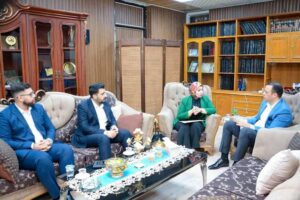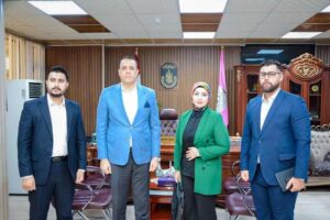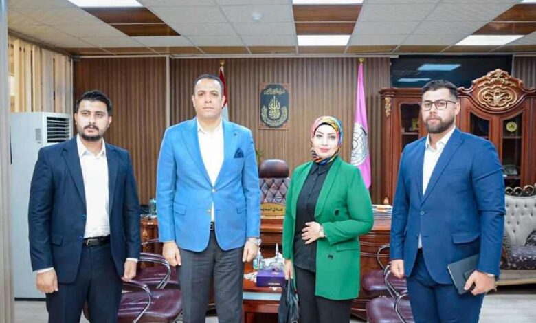 واستقبل عميد الكلية الدكتور عادل بديوي الوفد الزائر برئاسة الدكتورة ابتهال القيسي، مبديا استعداده لفتح قنوات التواصل والعمل المشترك في مجال العمل الفكري.
