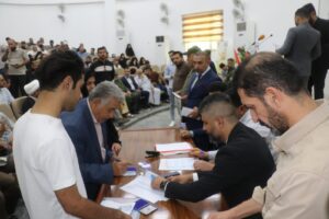 الحفل أقيم برعاية نائب رئيس الوزراء لشؤون الطاقة وزير النفط حيان عبد الغني وبتوجيه وكيل الوزارة لشؤون الاستخراج رئيس اللجنة المركزية لدعم هيئة الحشد الشعبي والمبادرات المجتمعية باسم محمد خضير بالتعاون مع لجنة الدعم المركزي في هيئة الحشد ومديرية شؤون المحافظات-مكتب محافظة الديوانية ومديرية الشهداء والمضحين.