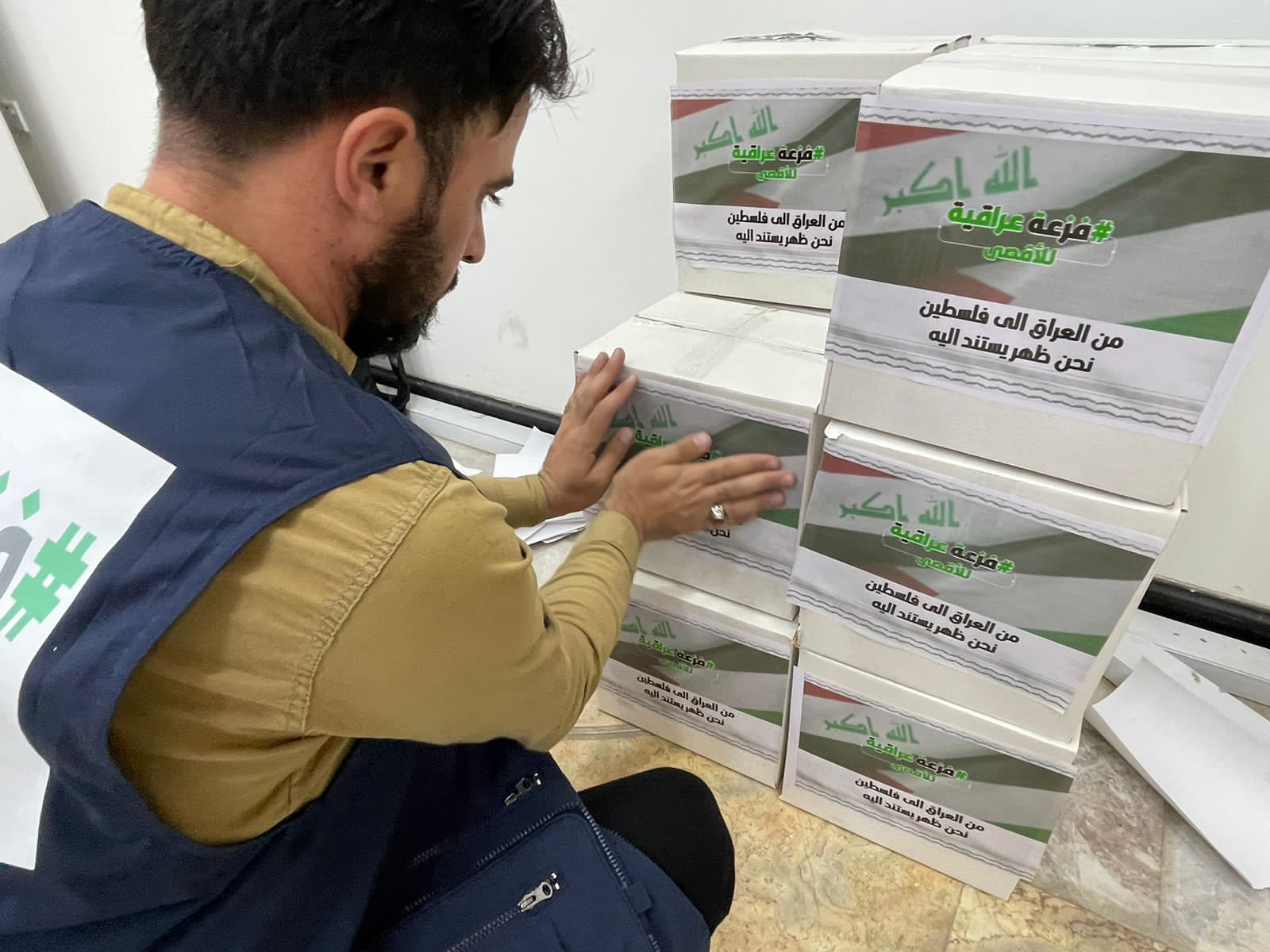 تنفيذا لتوجيهات القائد العام للقوات المسلحة، وتحت إشراف السيد فالح الفياض رئيس هيئة الحشد الشعبي تجهيز قافلة المساعدات الانسانية الاولى لإغاثة الشعب الفلسطيني الشقيق المحاصر في غزة تحت شعار ( فزعة عراقية للأقصى)