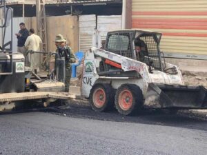 وقد شملت عمليات التأهيل اضافة سبيس للمناطق المنخفضة وتسويتها ورشها وحدلها، فضلا عن اكساء الشارع بطول 600 متر وعرض 10.