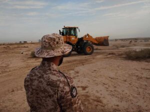 تواصل مفارز مديرية المتفجرات في هيئة الحشد الشعبي، اعمال مسح وازالة المخلفات الحربية في ارض مشروع النبراس في ناحية ام قصر بمحافظة البصرة.