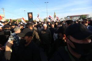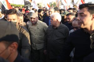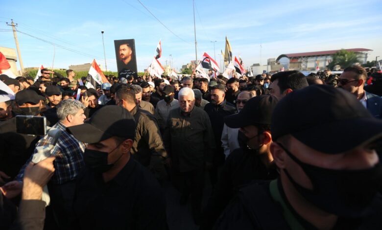 بالصور.. الفياض والمحمداوي يشاركان بتشييع شهداء القصف الأميركي الغادر