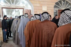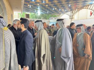 وكان في مقدمة الحاضرين ومستقبلي المعزين السيد رئيس هيئة الحشد الشعبي فالح الفياض والسيد رئيس أركان هيئة الحشد الشعبي عبد العزيز المحمداوي.