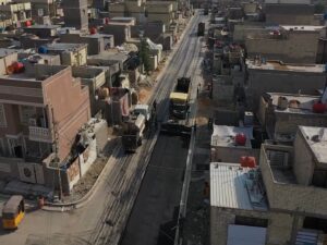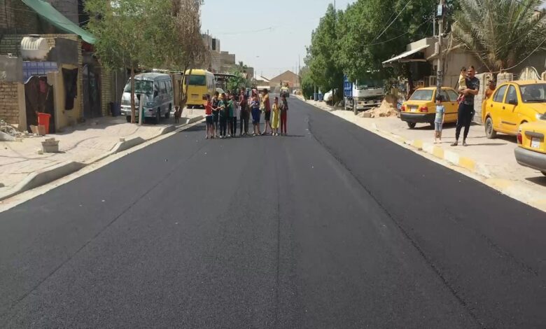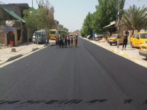 فريق الجهد الخدمي الحكومي يشرع بأعمال إكساء الطبقة الثانية لسبعة أزقة في حي الكوفة الأولى