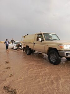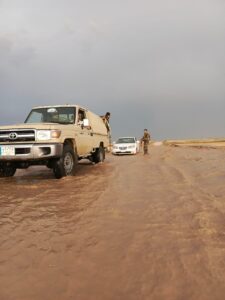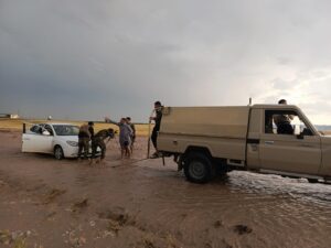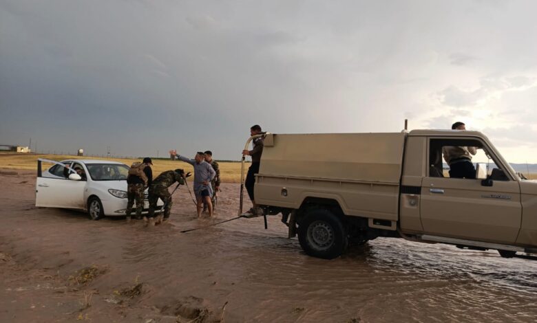 وقد قام اللواء بمساعدة اصحاب السيارات العالقة جراء الامطار الغزيرة التي شهدتها المحافظة.