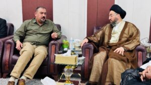 السيد الحكيم يزور مكتب الحشد بكربلاء ويثنى على خطط رعاية عوائل الشهداء والاهتمام بالجرحى