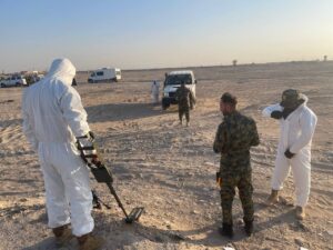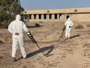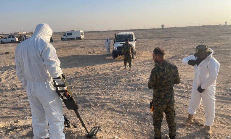 حيث تبين خلو الارض من الإشعاع الكيميائي بعد اكمال عملية المسح الفني، فيما عثرت مفارز المتفجرات على مقذوفات حربية وتمكنت من معالجتها بشكل امن.
