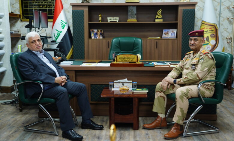 التقى رئيس هيئة الحشد الشعبي السيد فالح الفياض، اليوم الخميس، نائب قائد العمليات المشتركة الفريق اًول ركن قيس المحمداوي.