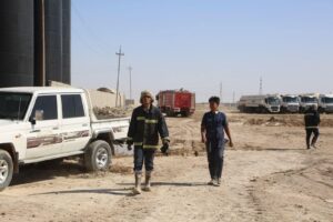بالصور: الجهد الخدمي للحشد يساهم بإخماد حريق في خزانات نفط جنوب بغداد